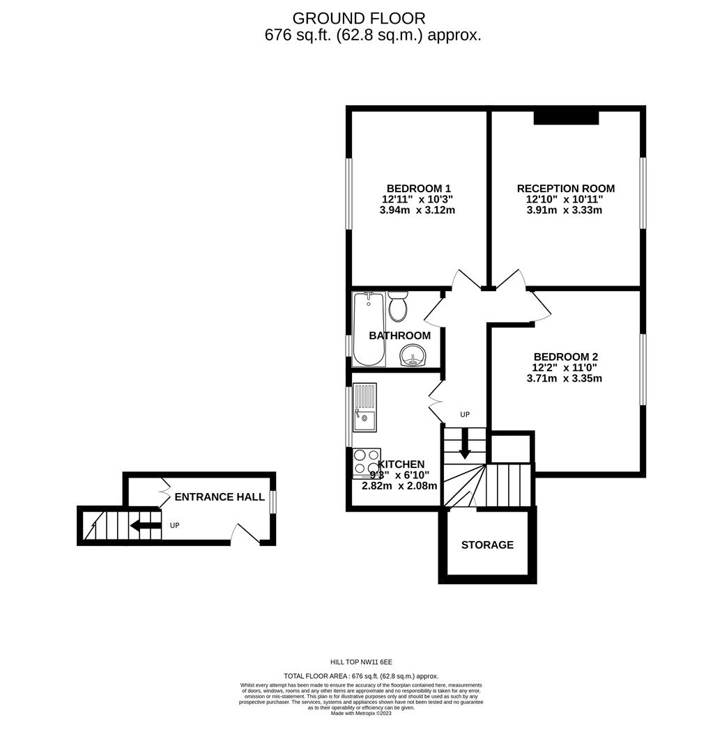 CASH BUYERS ONLY A 2 double bedroom 1st floor maisonette WITH OWN PRIVATE PORTION OF GARDEN situated on the first floor with own front door. Extending to 676 Sq Ft - 62.8 Sq M.From the front door there is an entry hall with cupboard and stairs leading to the first floor. A reception room with spotlighting, fitted kitchen overlooking the rear, two double bedrooms and a fully tiled bathroom.The apartment benefits from a private portion of the garden. The property is set well back from the road behind a shared lawned area. The garden is surrounded by natural hedging borders and a brick wall at the rear.Conveniently located close to the East Finchley tube station, The Market Place, which has restaurants and shops, as well as regular bus connections into London, all within walking distance.A chain free transaction.